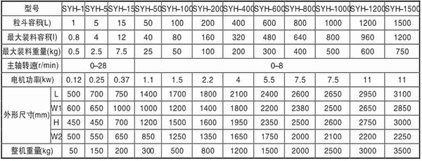 三維運(yùn)動(dòng)混合機(jī)技術(shù)參數(shù):